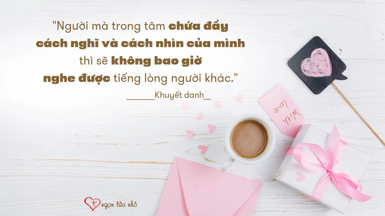 Chúng ta thường tìm cách hiểu người khác dựa trên kinh nghiệm bản thân, sự phán đoán và suy diễn từ thái độ, hành động, cách thể hiện của họ. Đó là cách làm thiếu cơ sở, không có ý nghĩa xác thực, dễ dẫn đến những nhận xét sai lệch, chủ quan trong phản ứng và hành động, làm tổn thương đến mối quan hệ nói chung và tình cảm dành cho nhau nói riêng.